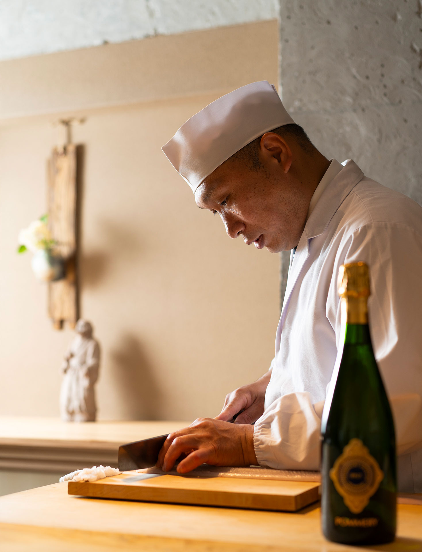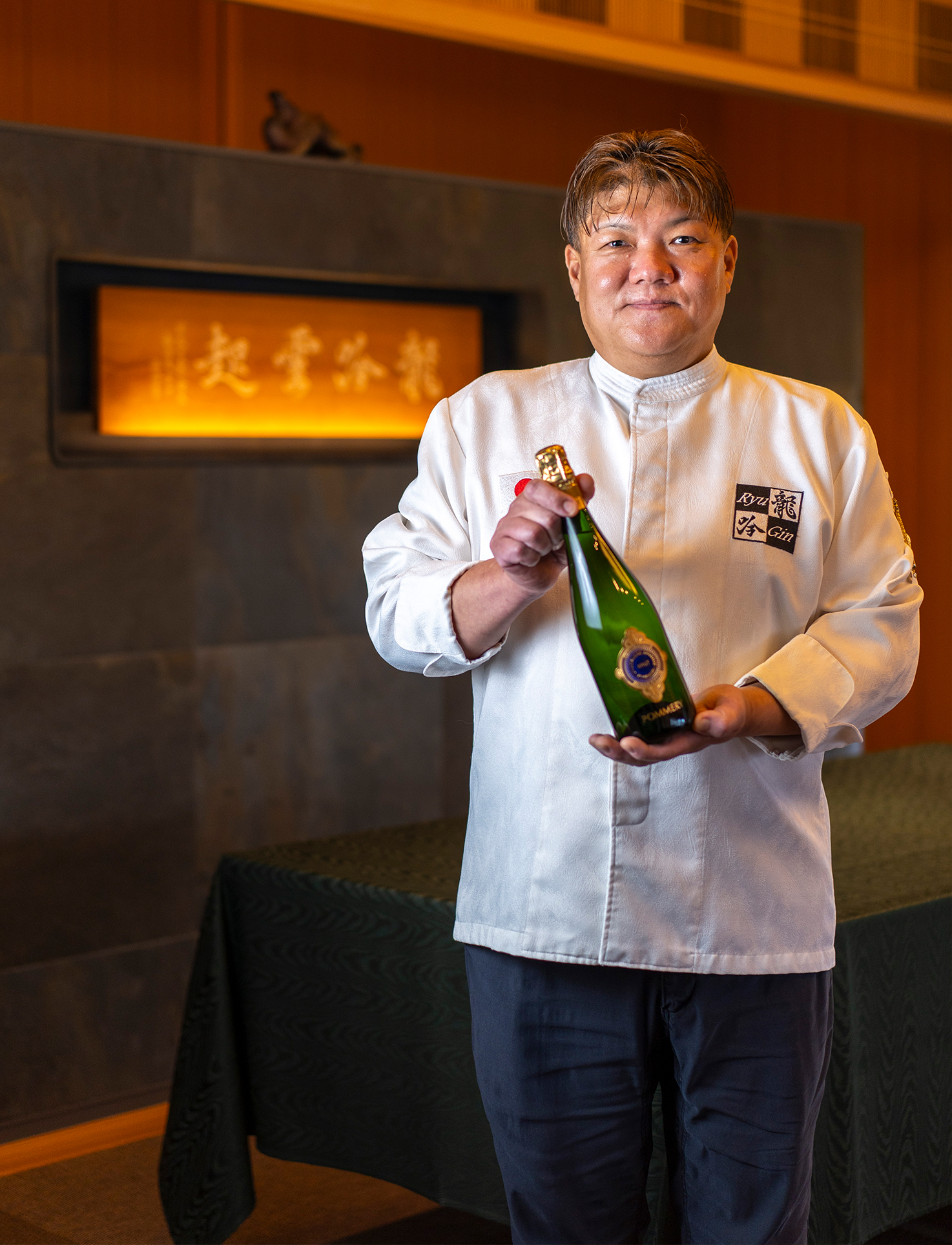料理人としてこの世界に入った頃は憧れのような気持ちを持っていたシャンパーニュですので、今回このような機会を頂けてとても光栄です。またプライベートでも、自身の子供の出産のお祝いで頂くなど、人生の色々な、嬉しい節目の思い出のシーンにも度々登場するシャンパーニュです。