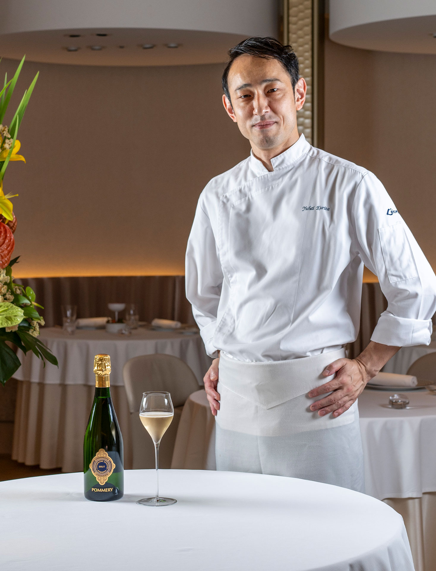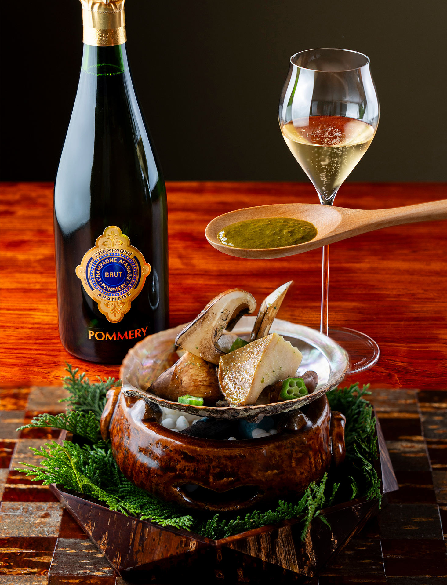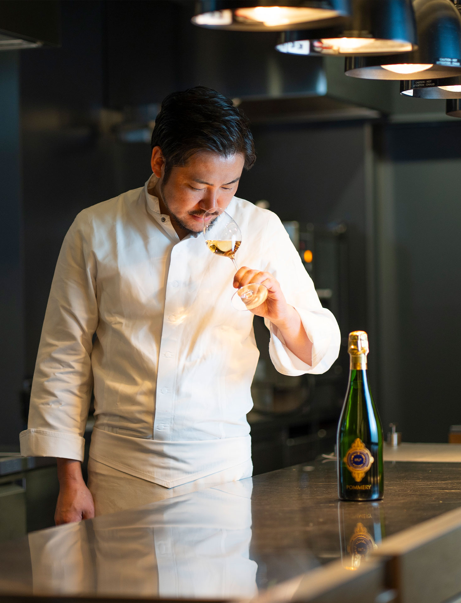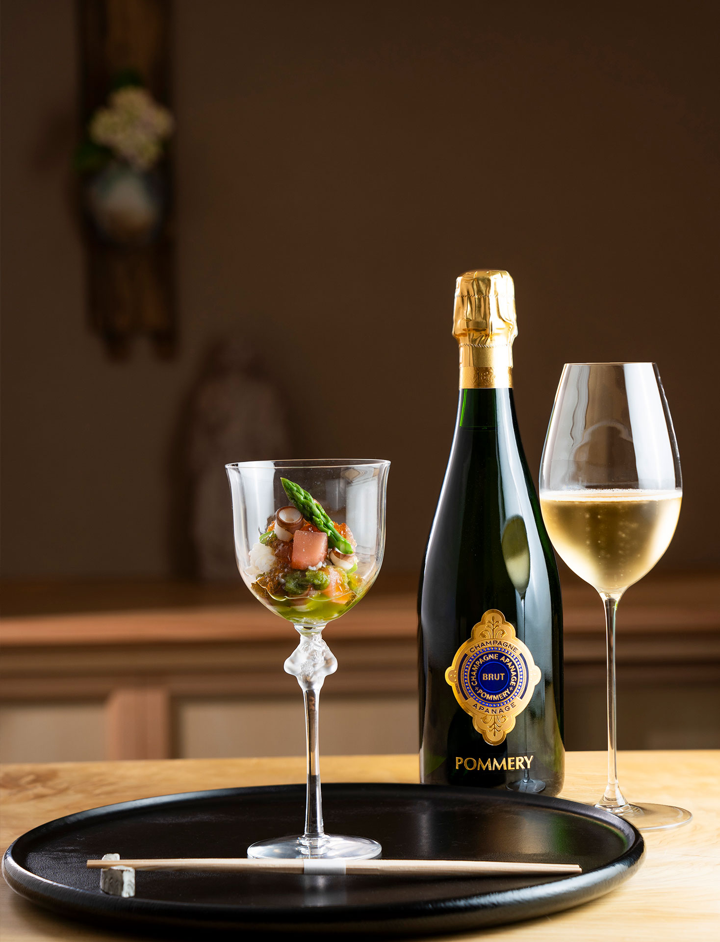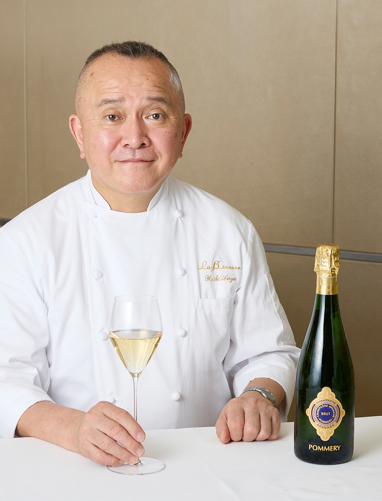 私が四国から東京に出てきた時、ちょうど日本料理が日本酒だけではなく、シャンパーニュやワインを食中酒に取り入れるようになった、正にワインブームの始まりのような時代でした。その時、勤めていた店で私はカウンターに立ち、料理をしておりましたが、その時に、その修行先の店がハウスシャンパンのように使っていたのが、『ポメリー』でした。私が一番最初に名前を覚えたシャンパーニュであります。